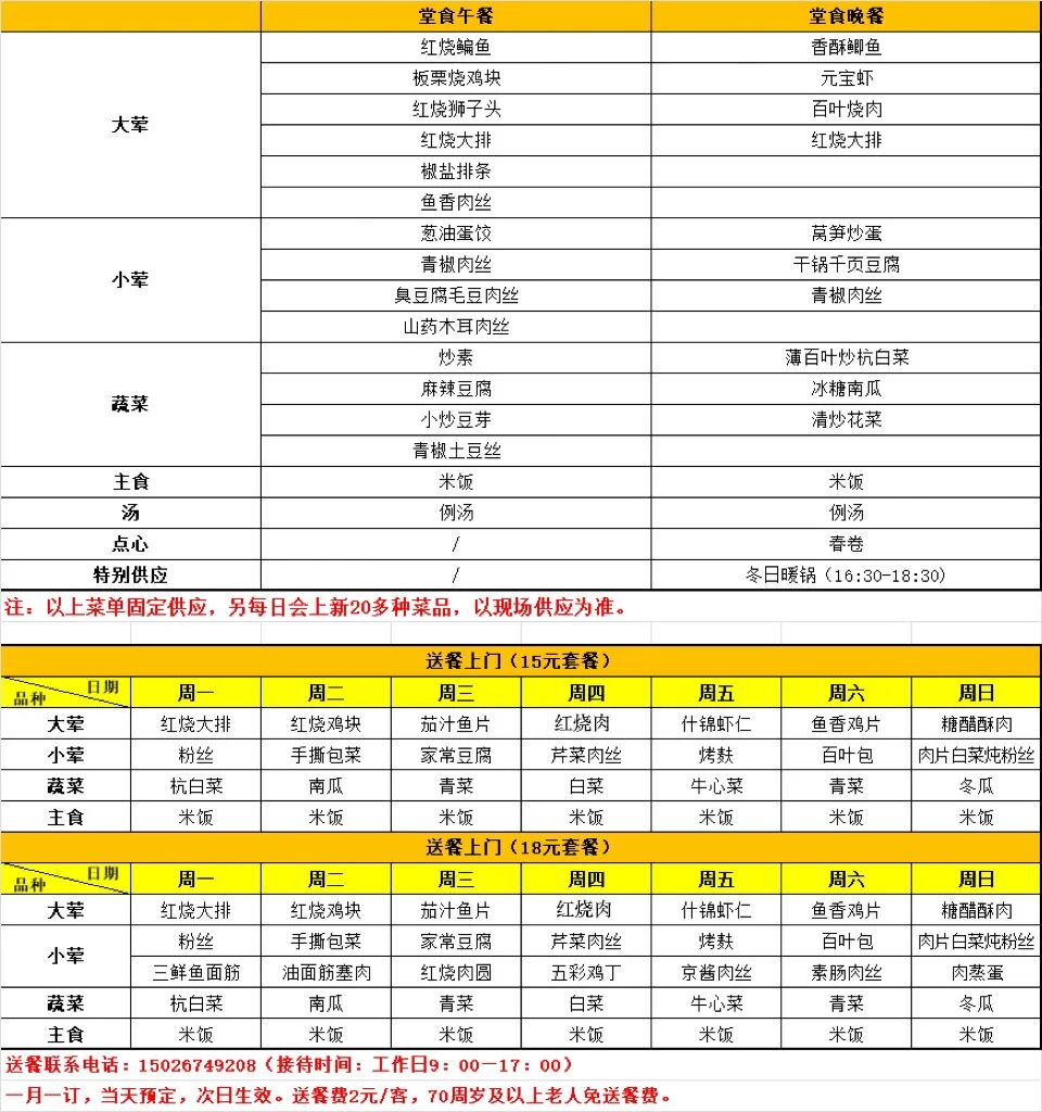 2025年12月15日 来源: 甘泉路街道社区食堂一周菜单上新咯!快来开启一周美食之旅!