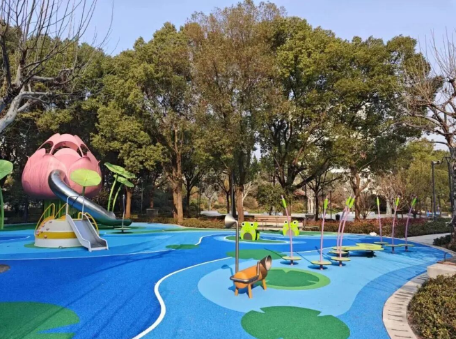关注到“一老一小”的需求,园内新建了以“荷趣”为主题的儿童乐园,铺装模拟荡漾的荷塘水面,配以青蛙、荷叶、荷花等元素的无动力游乐设施,充满童趣。同时,全园实现了无障碍通道的连接,方便全龄段市民游客游园。