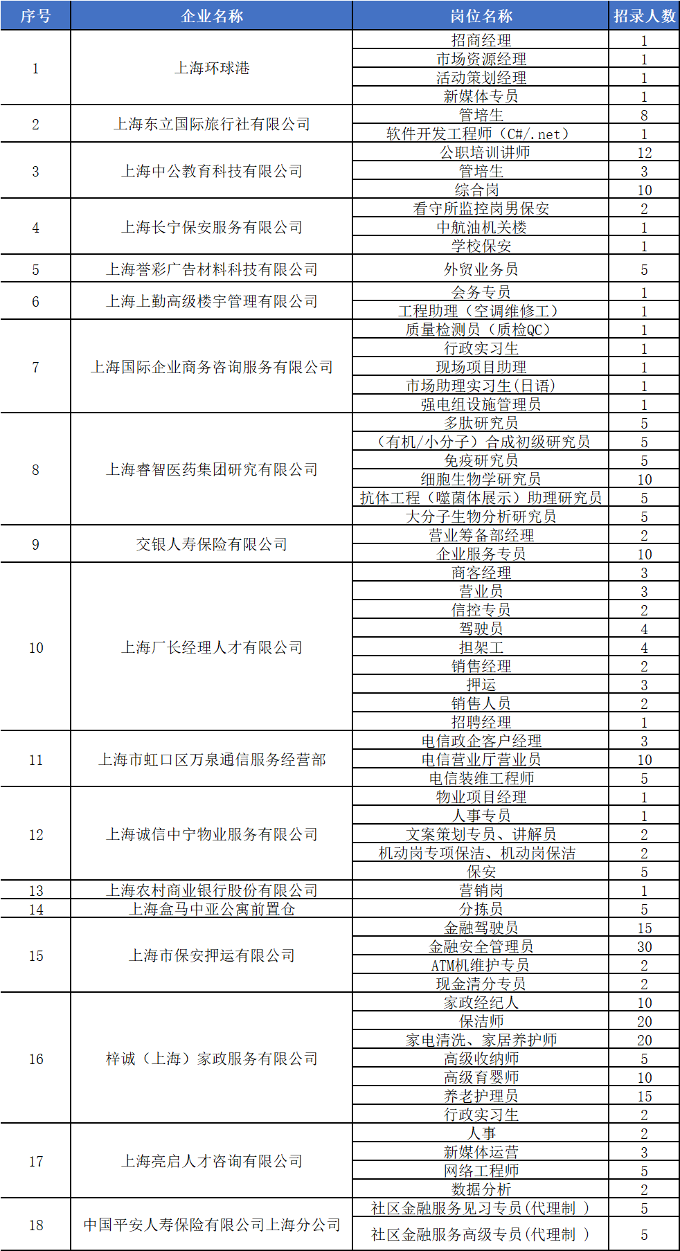 招聘会企业及岗位信息(排名不分先后)