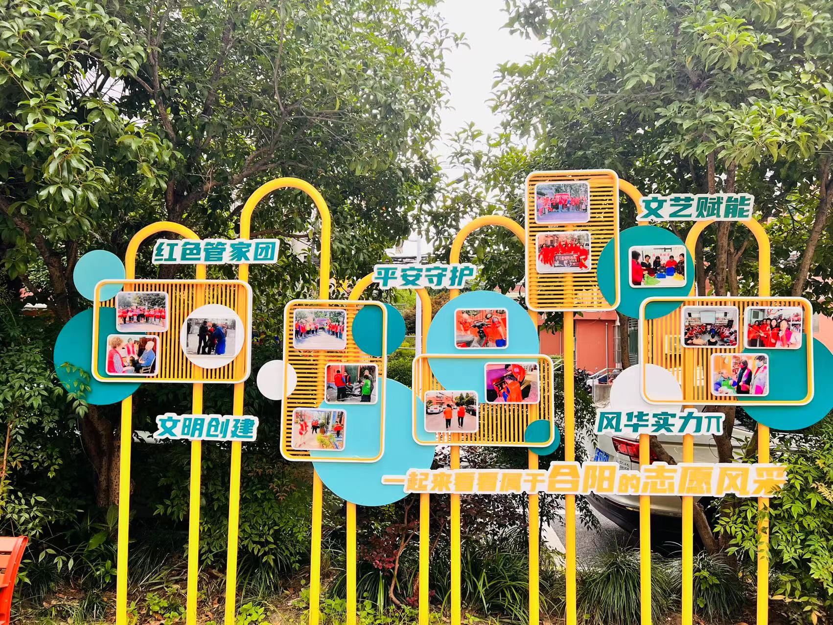 此次小广场的升级改造,还特地布设了志愿风采展示架,用照片的形式,展现小区志愿者在文明创建、平安守护等各类志愿服务行动的最靠谱风采。通过展示架的设置,可以时刻激励、带领更多的居民和孩童,用实际行动践行“奉献、友爱、互助、进步”的志愿服务精神。