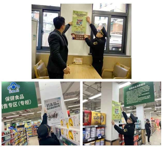 此外甘泉市场监管所深入各居民区、商超、保健食品商店、养老院、社区食堂等老年人活动聚集的场所,张贴防骗海报,助力守护银发权益。
