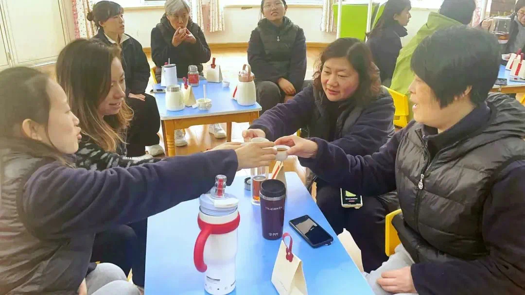 “春季与肝相应,是养肝血的最佳时机。玫瑰陈皮乌龙茶以其独特的功效和简易的制作方法,非常适合在这个季节饮用,不仅香气扑鼻,还能疏肝解郁、理气健脾,成本只要几块钱,营养价值却远超网红的奶茶和咖啡。”随着老师的讲解,大家围炉煮茶,喝上一杯自制的养生茶,让身心得到片刻放松,可以精力充沛地投入到下午工作中。