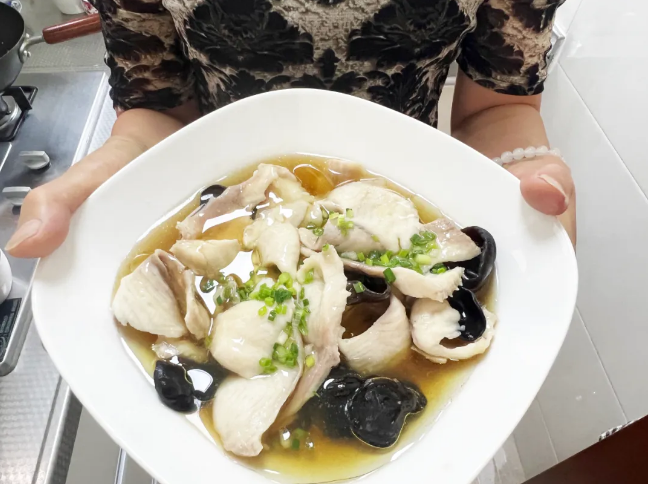 早上8点,社区居民杨月珍家的灶火已经燃起。她今天要做的是经典鲁菜“糟溜鱼片”。黑鱼片薄而匀,木耳嫩而滑,糟香四溢。“食材新鲜是关键,鱼是清早去菜场挑的,活杀现片,才能保证口感嫩滑无刺。”杨阿姨一边操作一边介绍,言语间满是自信与喜悦。“我们小区邻里氛围特别好,能把拿手菜跟大家分享,本身就是一件开心事。”
