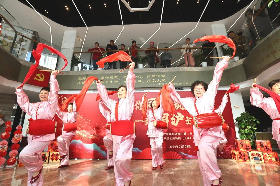 马年春节越来越近,当许多人踏上归途时,在普陀区甘泉路街道,却有一群人选择留下,他们是为了保障社区雨污混接整治工程安全平稳推进而留守的中建七局建设者和管理人员。2月8日,一场主题为“与你同行筑梦暖,一起留沪过大年”的特别新春活动,在甘泉路街道社区党群服务中心和甘泉苑小区同步展开,让这些留沪者感受了一回热气腾腾、温情满满的“上海年味”。