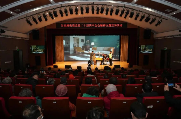 二是群众参与“演”,活化理论表达。以融合创新为突破口,聚焦社区治理、民生服务等现实题材,自主创排原创情景朗诵剧《我们的答卷——致敬我们共同奋斗的社区》,采用“剧情演绎+情景朗诵”的艺术表达,吸引群众广泛参与,将理论政策转化为可触可感的生动故事。让基层干部、社区居民在沉浸式观演中感悟全会精神的实践温度,切实增强理论宣讲的感染力与吸引力。