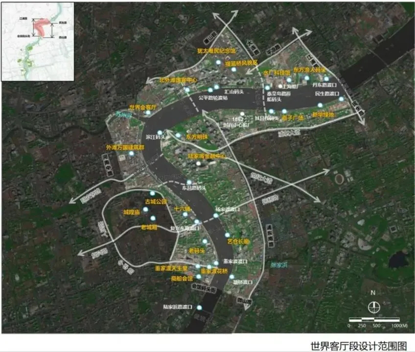 世界客厅覆盖外滩—陆家嘴段两岸总长约16.5公里,打造海派潮流文化聚集地,涉及杨浦、虹口、黄浦、浦东四区。浦江天街位于小陆家嘴片区,将进一步打开滨江第一界面,用立体步行网络串联国际会议中心、浦东美术馆等公共建筑,打造和外滩对望的观景平台。艺美长廊位于浦东塘桥片区,通过艺仓长廊改造更新、激活船坞广场等,打造以最美日落艺术长廊为特色的滨江休闲街区。百子绿岸位于陆家嘴东部片区,将激活双层步道,结合垂江绿楔联动腹地功能,打造潮流运动水岸。