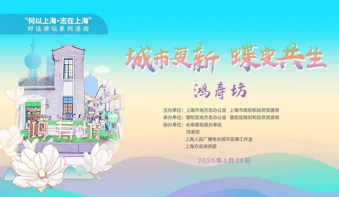 本次活动由上海市地方志办公室、上海市规划和自然资源局联合主办,普陀区地方志办公室、普陀区规划和自然资源局承办,长寿路街道办事处、鸿寿坊、上海人民广播电台城市品牌工作室、上海方志讲师团协办。