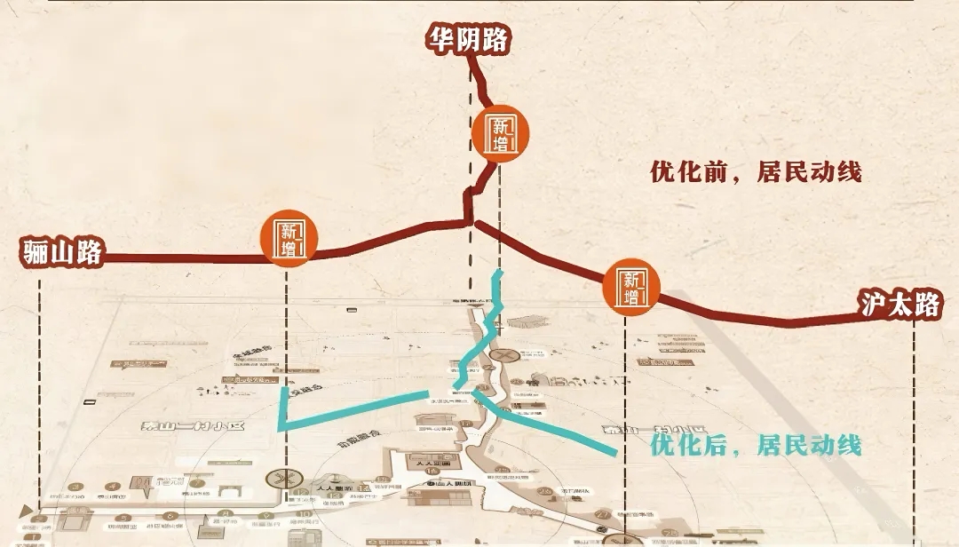 “全域融合”的第一步是破除物理壁垒。更新后,三个小区打开了通往“人”字形核心区的门户,新增社区侧门,居民步行时间缩短3至7分钟。“非常方便,不用再绕行一圈。”泰山二村居民陈国民说,“以前只能小区内逛逛,现在晚饭后可以去活动中心吹空调。”