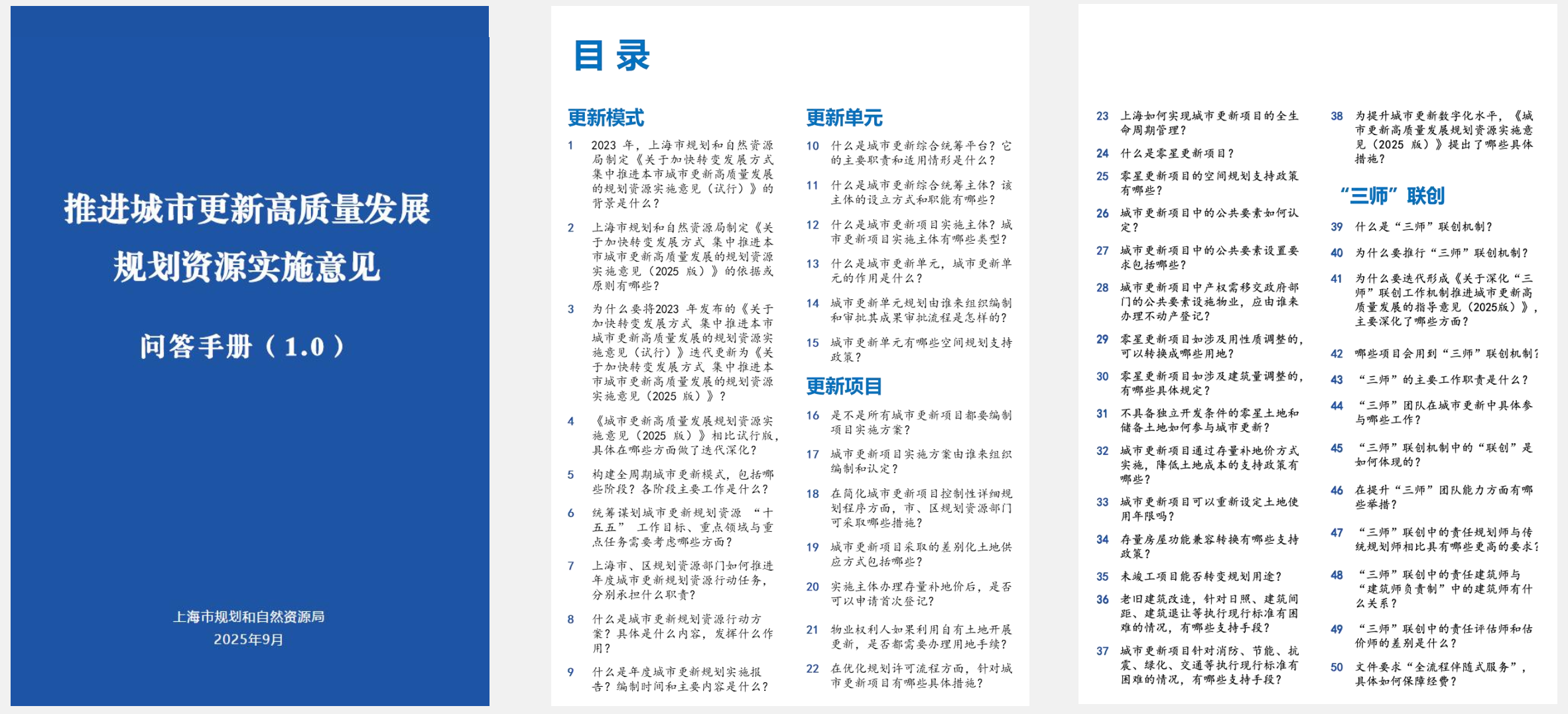 《推进城市更新高质量发展 规划资源实施意见问答手册(1.0)》(四) 2025年09月24日 来源: 普陀规划资源
