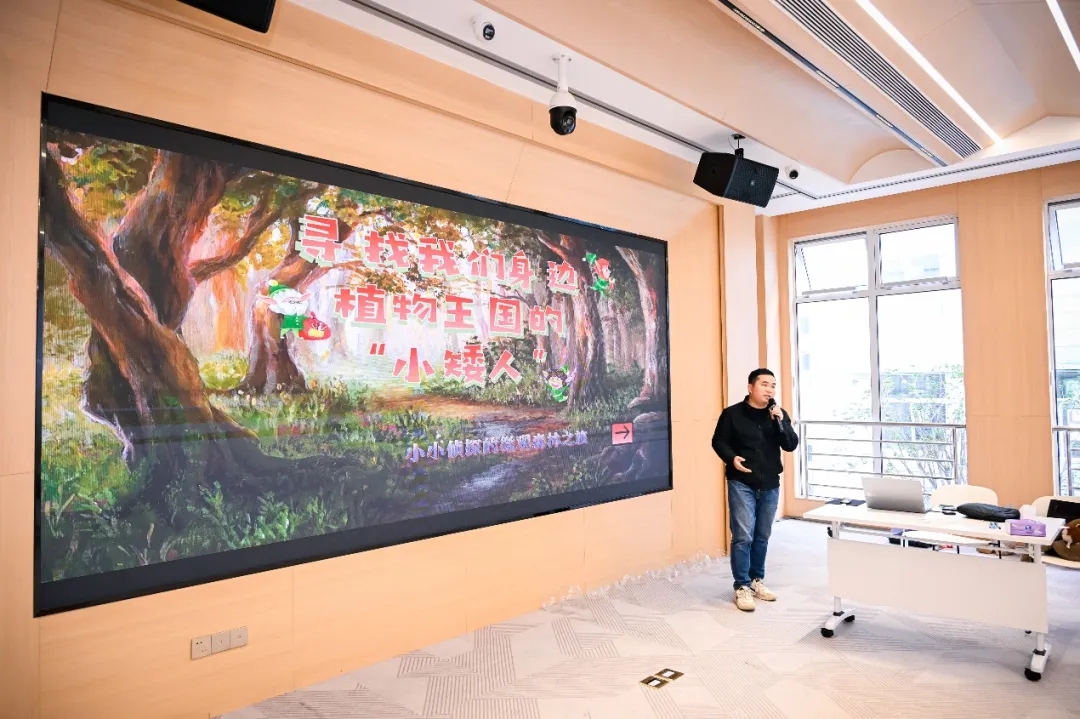 活动以一场兼具专业深度与趣味互动的科普小课堂拉开序幕。主讲人泽葵老师带领大家走进绿色王国,探寻藏在身边的“小矮人”——苔藓植物。他用生动通俗的表达,细致讲解了苔藓的生长环境、外观特征、水分与营养吸收方式,以及它们独有的生存本领和生态作用,让在场的亲子家庭对苔藓这一常见却易被忽略的植物有了全新认知。