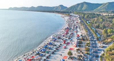阳光正好,网红景点金厢银滩游客如织。“推开窗就能看见大海,走下楼就有特色小吃,晚上还能吹海风看星星,太惬意了!”春节假期,来自深圳的游客吴雨萱特地选择了金厢镇,她喜欢这里洁白柔软的沙滩和绚丽多彩的民居。