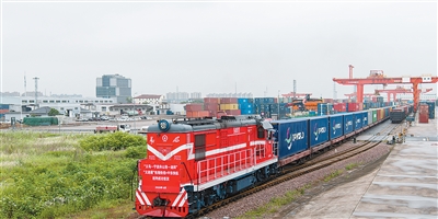 | 一列满载货物的海铁联运班列从铁路浙江义乌西站开出,驶向宁波舟山港。 |