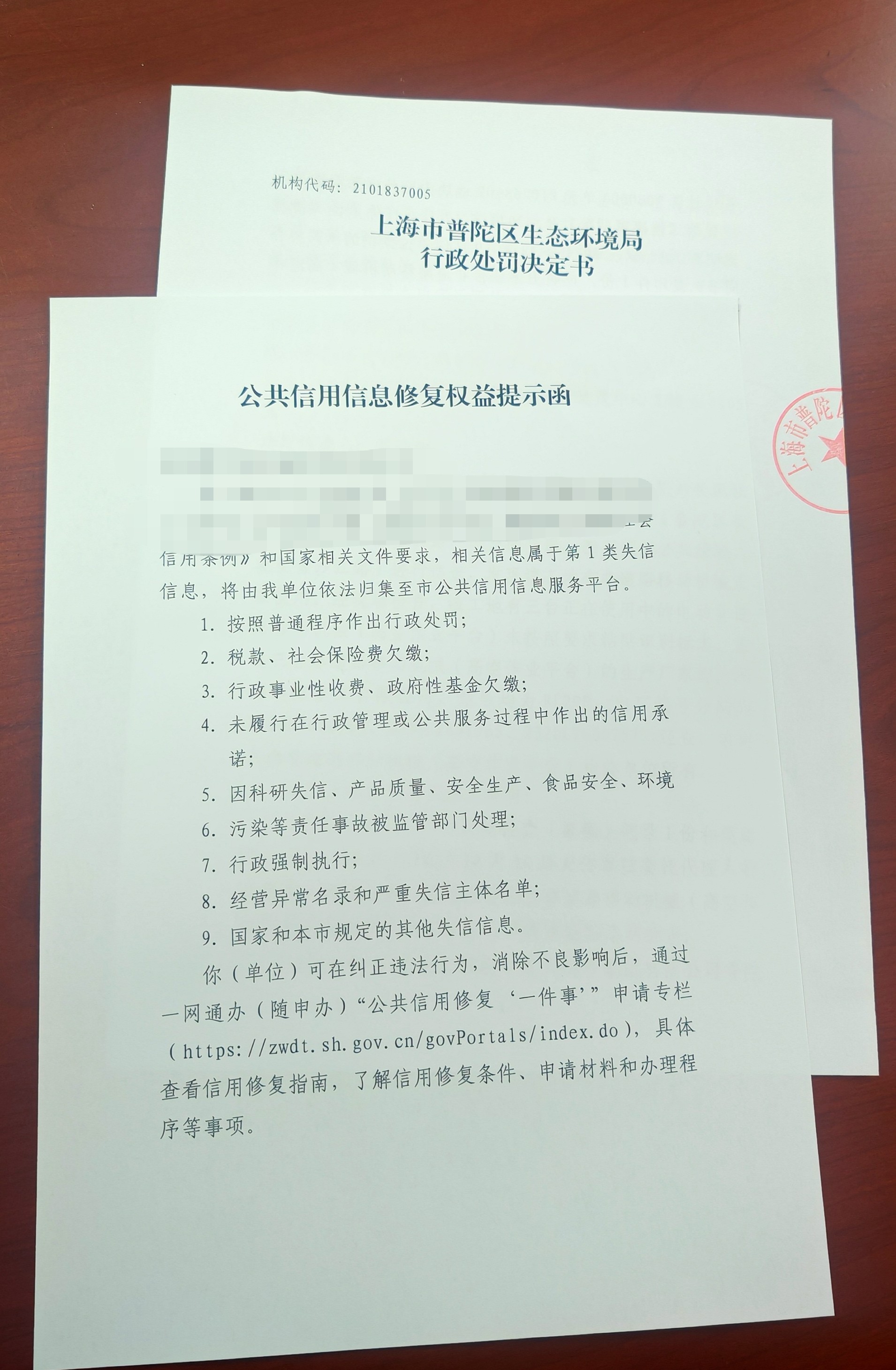 为深入贯彻落实党的二十大精神,深化法治化营商环境建设,普陀区生态环境局立足区域实际,推出“两书同达”机制,在严格执法的同时强化信用修复全流程服务,助力企业重塑信用、轻装前行。2025年3月5日,区生态环境局执法大队执法人员向某企业同步送达《行政处罚决定书》与首份《公共信用信息修复权益提示函》,标志着信用修复服务实现从“碎片化答疑”到“主动指引服务”的跨越式升级。