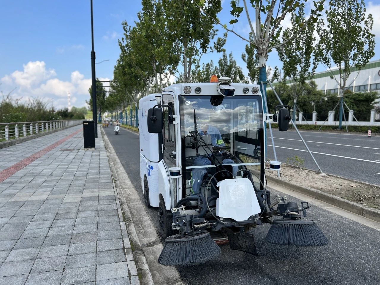 随着城市发展,老百姓对道路清扫保洁效率和质量都有了更高要求。日前,普陀区在桃浦镇金昌路试行了全镇首条“人机协同作业”的高标准保洁道路,通过智能无人扫路车的“智慧助力”,一遍实现道路清扫,经测算,保洁人员不变的前提下,效率增加约一倍。