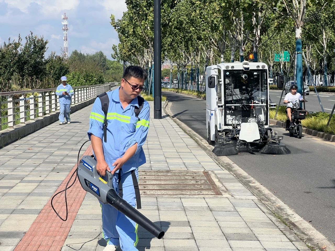 据悉,普陀区目前已在苏州河沿线(中远两湾城段)和半马苏河公园(光复西路段)实行了无人扫路车机械化保洁。金昌路在累积上述路段的清扫经验之下,又做了升级优化,已试点成为普陀区首条高标准“人机协同作业”道路,即通过“人工清扫保洁+机扫+冲洗+洒水降尘组合工艺”对路面进行综合保洁作业,沿线清扫工人采取“接力棒”的作业方法,做到一人一车,无缝衔接,大幅降低人工清扫成本,显著提升作业效率与效能。