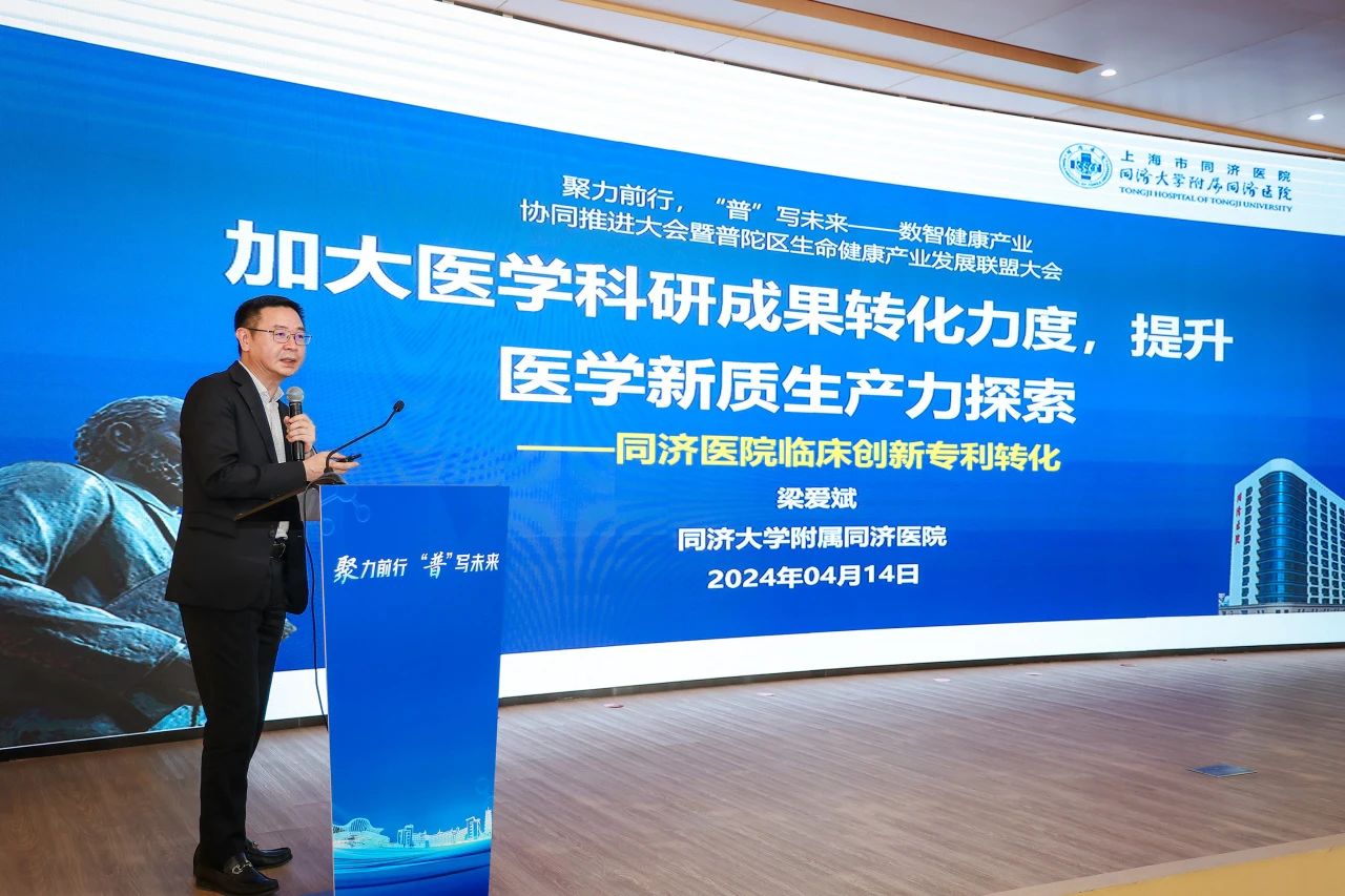 在交流环节,同济大学附属同济医院党委副书记、院长梁爱斌,上海市第六人民医院骨科学科带头人、主任医师范存义,上海市儿童医院科教部主任朱海涛,普陀区中心医院副院长孙剑玥分别作临床创新专利转化的交流。