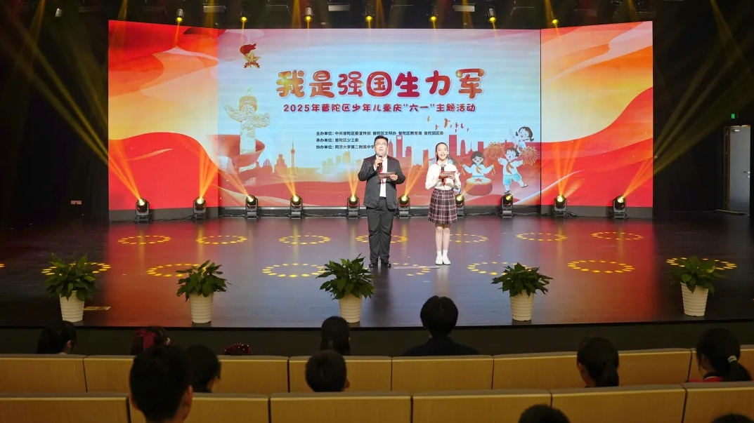 日前,“我是强国生力军”2025年普陀区少年儿童庆“六一”主题活动在同济大学第二附属中学举行。市少工委主任、市少先队总辅导员赵国强,区委副书记周艳,区人大常委会副主任吴凌昱,区政协副主席欧阳萍,区委宣传部副部长、区文明办主任朱小林,区教育工作党委书记胡俊,区教育工作党委副书记、教育局局长赵平,团区委书记吕欢等出席活动。区教育局、区教育学院相关负责同志,全区少先队员、少先队工作者代表及社会各界人士齐聚一堂,共同庆祝节日,见证新时代普陀少年的蓬勃风采。
