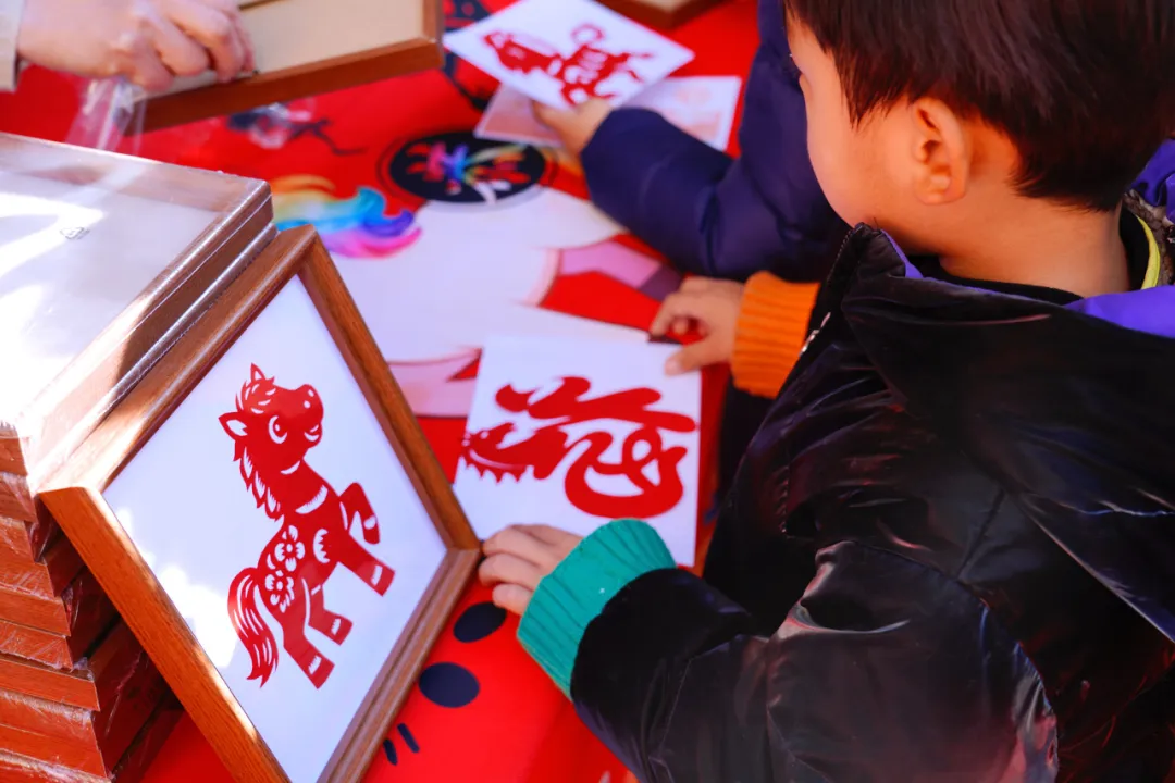 活动现场,亲子家庭们从“福运当头”打卡点出发,在“家+书屋”延伸点的文化浸润下,沉浸式体验传统民俗的独特魅力。写新年愿望、倒贴福字,一笔一画都是对新年的期许;贴窗花、投壶雅趣,一折一投皆是传统文化的传承;猜灯谜、集印章,一言一语满是亲子协作的欢乐。孩子们在家长的陪伴下,在欢声笑语中感受传统节日的韵味,在互动体验中收获成长的力量,让“家+书屋”成为传承文化、传递幸福的重要阵地。