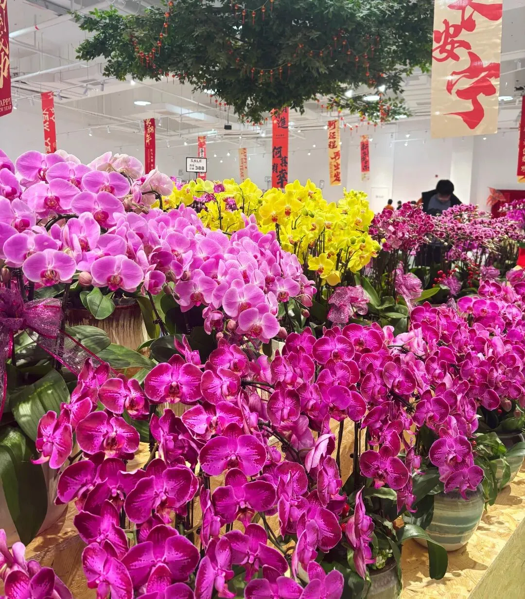 李辉透露:“周末日均人流量可达四千左右,日营业额约三四万元。”不少消费者专程从其他区域赶来,来自静安区的王雅静便是其中之一,“这里性价比非常高,我们是朋友推荐来的。本来已经买了两盆98元的,但还想看看188元的。”除蝴蝶兰之外,现场还有漳州水仙、郁金香、大花蕙兰、发财橘等年宵花热款,价格同样亲民实惠。
