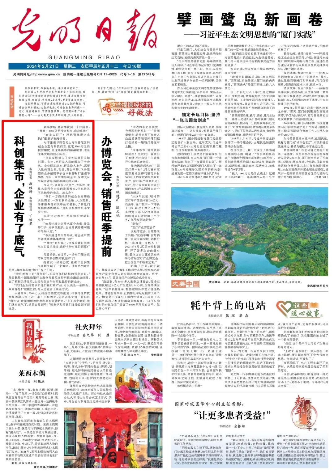 《光明日报》头版头条关注普陀科创集市提振经济好做法 发布时间:2024年02月21日来源: 光明日报