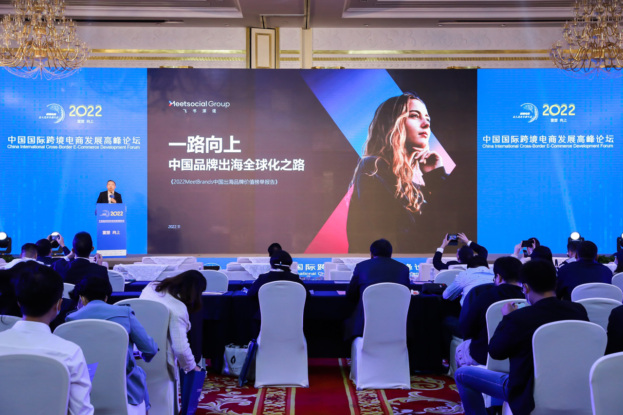 图:2022年,飞书深诺与艾瑞咨询联合首发《2022MeetBrands中国出海品牌价值榜单报告》,图为报告发布会(来源:公众号科创上海)