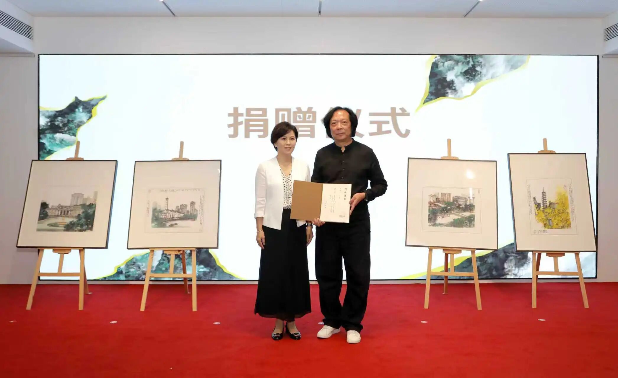 在开幕式致答谢辞的环节中,汪家芳先生深情地表示:近些年,一直希望能有机会让家乡观众在家门口全面欣赏他的作品。这个心愿在此次展览中终于得以实现。非常感谢普陀区文化和旅游局精心打磨出这样高品质的海派文化地标,让他在家门口以这样的方式反哺家乡,向这片热土奉上他的感恩与热爱。他向普陀区文旅局捐赠《宜昌路消防站》《上海造币厂》《古寺隐福》《我家阳台写生》等四副画作。
