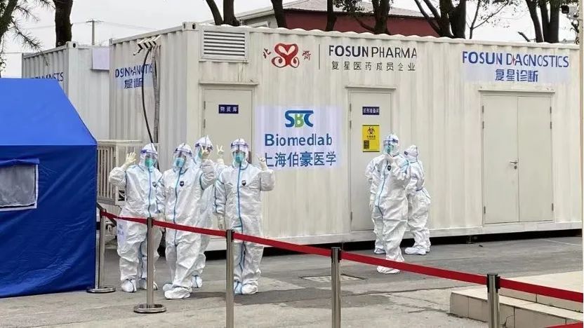 48小时,是复星医药党委给自己定下的死命令。在接到集团党委“不惜一切代价帮助上海提高核酸采样效率”的命令后,医药集团党委第一时间积极响应。两天内,复星北铃的一名技术人员带着两台移动式方舱实验室,克服重重关卡和阻碍,从北京驰援上海。这两台实验室采用10人混检模式,一天可以检测20万人份,有力地缓解了社区筛查的压力。