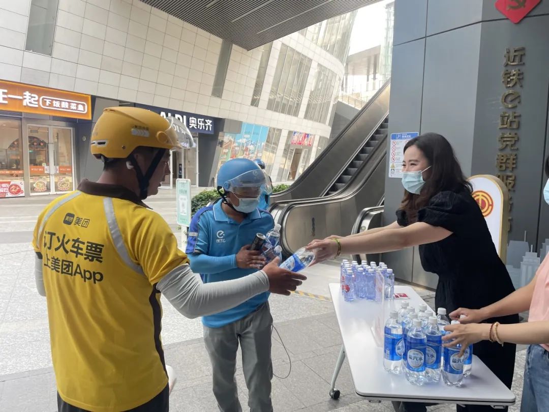 长风新村街道 清凉e夏,爱心补给 为进一步强化党群阵地服务体系建设,在夏季高温来临之际,长风新村街道近铁e站党群服务站主动关爱户外工作者群体,开展“清凉e夏·爱心补给”户外职工系列夏季慰问活动,为户外工作者送上冰镇盐汽水和冰棍,并开展“热射病防治”小课堂。入夏后,服务站内充分做好防暑降温用品准备,常备常温和冰镇的饮用水、盐汽水,准备冰凉贴、冰毛巾以及藿香正气水等各类防暑用品,滚动播放各类急救教学小视频。下午高温时间段,不定时在站点门口,为户外工作者主动提供清凉补给。近铁e站党群服务站用心呵护每一位户外工作者,为党员群众的夏日出行提供多一环节的爱心接力保障。