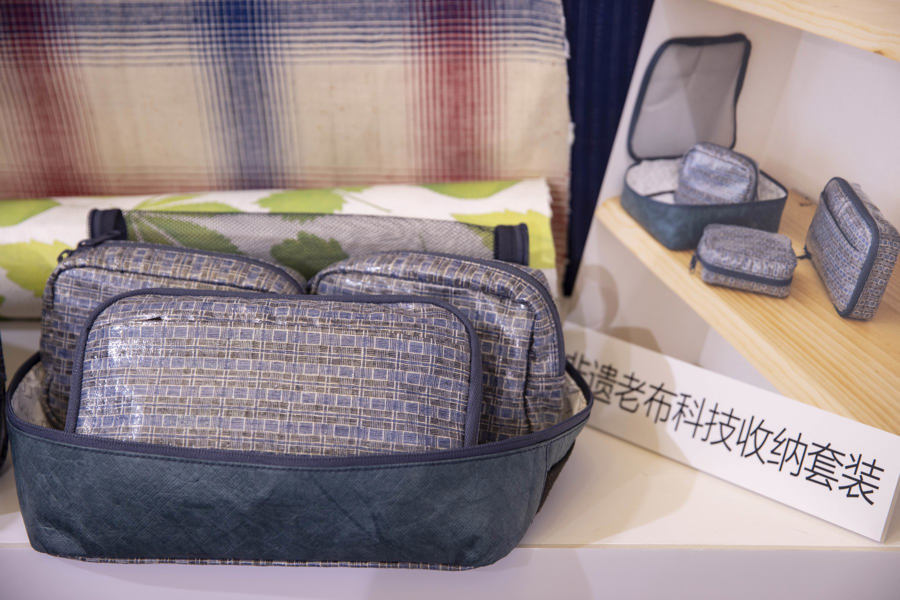 用“科技土布”制作的收纳袋套装。记者 赖鑫琳 摄