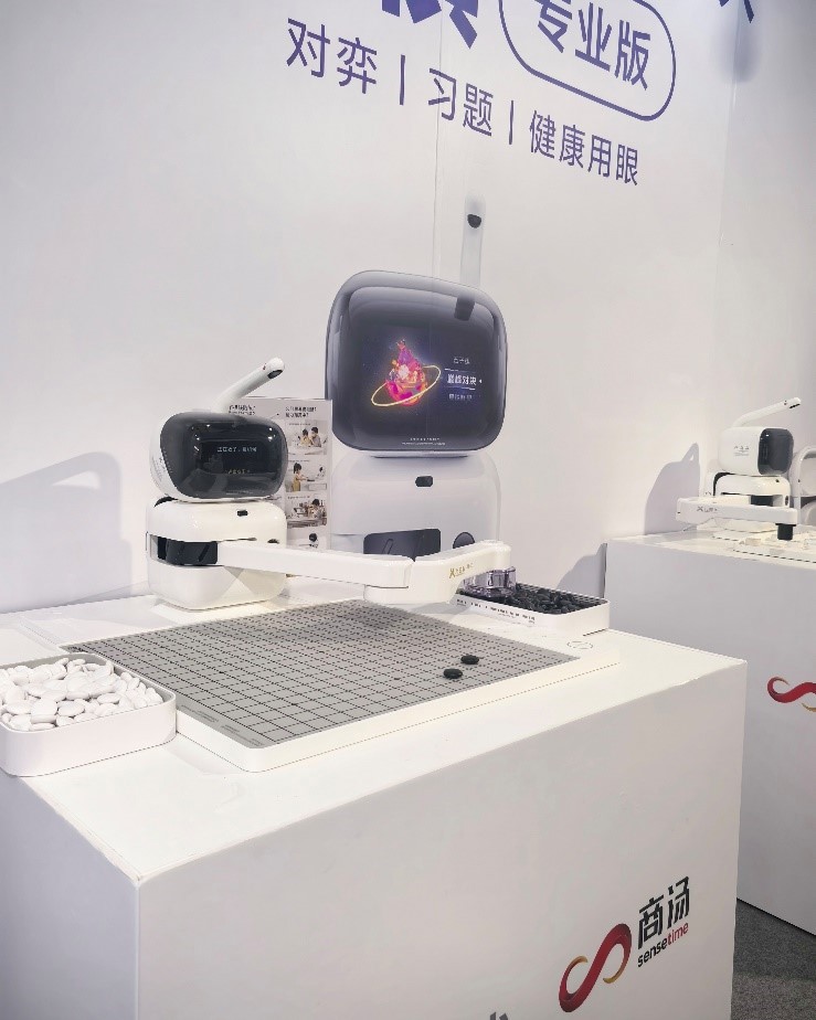 “白棋棋形已被破坏,通过打吃收气。”在商汤科技展区,一台台外形酷萌的机器人吸引了很多人目光,一些观众坐下来,与机器人对弈中国象棋或围棋,亲身感受它们的棋力。展区工作人员介绍,“元萝卜AI下棋机器人”能通过“画面引导+语音激励+机械臂演示”激发孩子学棋兴趣,成为贴身的专职陪练,还能以毫米级的操作精度进行取子、落子,让孩子感受到与实体机器人对弈的乐趣,而不必长时间盯着电脑屏幕学中国象棋和围棋。