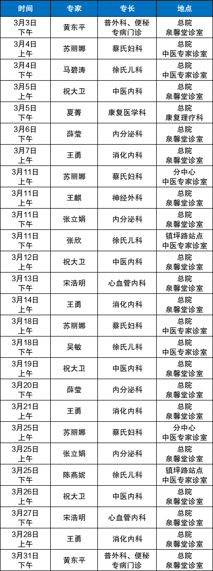 泉服务丨3月泉馨堂及海派中医传承门诊预告