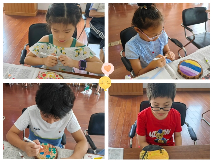 原木绘画看似简单,实则构图、上色等每一个环节都需精心雕琢,不容丝毫马虎。大家在原木上勾勒线条、涂抹色彩,将自然的纹理与自己的奇思妙想相融合。在学生们灵巧的双手下,熊出没的森林、蘑菇组成的奇幻世界、可爱的小兔子、充满未来感的机器人……一幅幅充满故事性和趣味性的美丽原木画作品应运而生。