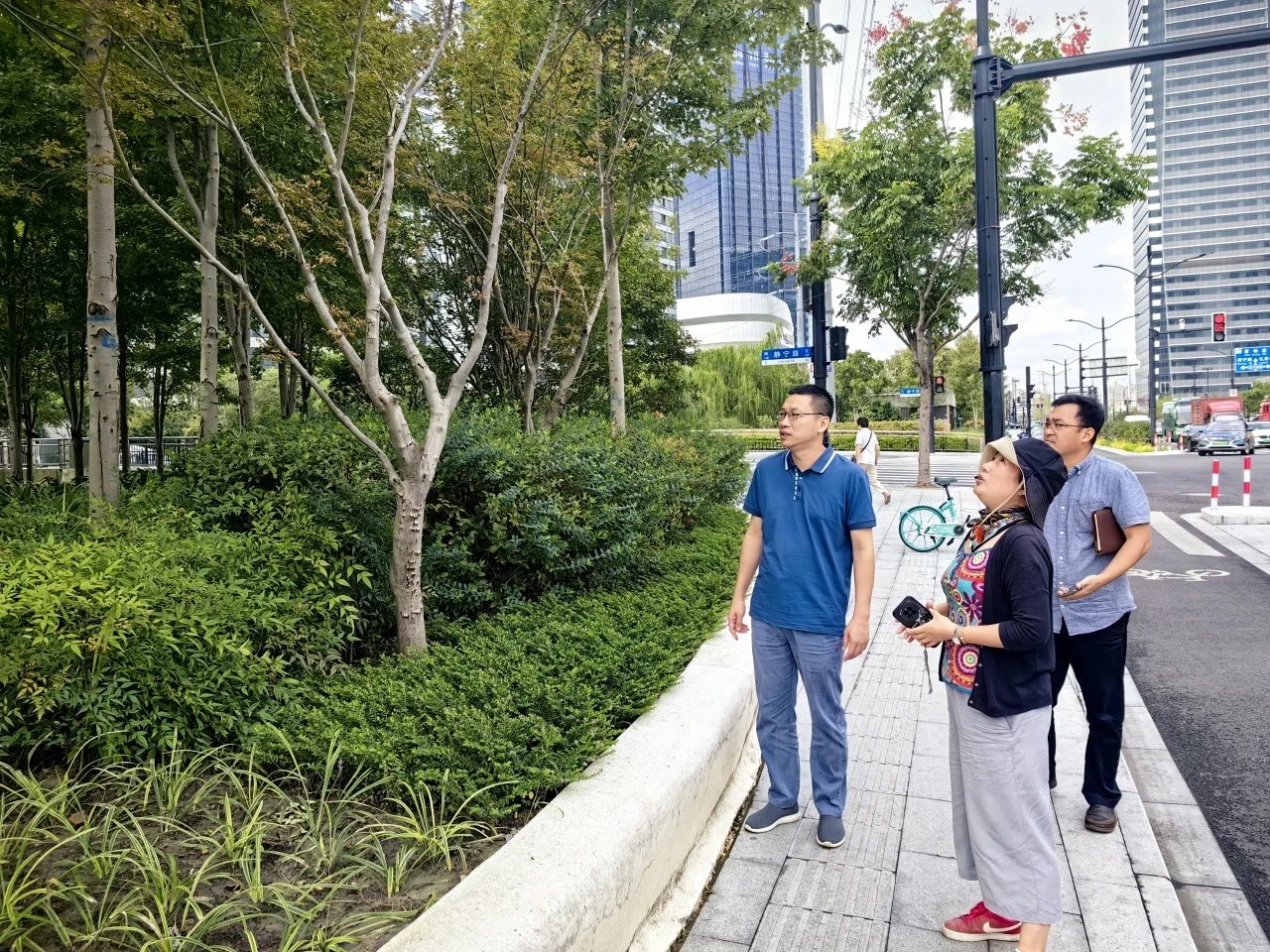 章凡一行在静宁路实地查看了绿地管理和养护情况,听取关于公共绿地巡查管养以及林长制相关工作的开展情况、应对台风开展的绿化应急处置工作情况。章凡指出,要常态化开展巡林工作,落实长效管护机制;要压实公共绿地、林地主体责任,做到底数清、情况明;要抓实绿地、林地、古树安全工作,强化绿色资源保护,切实做好绿地、林地防火工作。