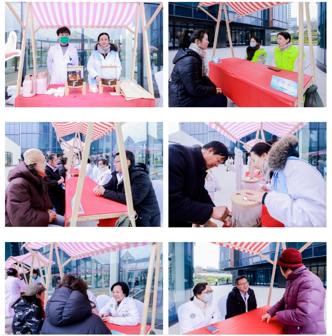 在3·5学雷锋志愿服务集市文明活动中,普陀区人民医院、石泉街道社区卫生服务中心、中福会托儿所设置了丰富的健康咨询服务,涵盖现场问诊、血压测量、防流感香囊制作体验、中医康复适宜技术体验、婴幼儿健康教育与咨询等项目,为居民提供全方位的健康服务,切实满足居民的健康需求。值得一提的是,中医茶饮品尝及泡脚活血方是最近大火电影中《哪吒之魔童闹海》同款,引得附近居民和楼宇白领驻足品尝!