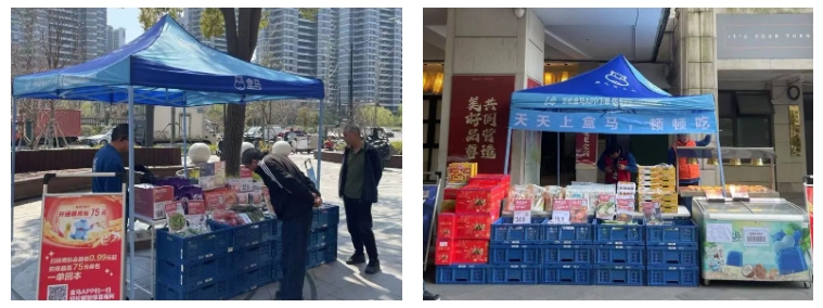 盒马鲜生品尊店店长的留言引发了一场“资源联姻”。铜川街区党支部迅速化身“资源管家”,作为积极参与街区共建的骨干商户,街区党支部在收到这一诉求后,十分重视第一时间就进行“头脑风暴”,短时间内敲定合适场地、外摆推广时间、果蔬直销产品、安全注意事项等,连续三周的外摆活动不仅让居民享受到新鲜果蔬,更催生了更深度的合作——商户主动答应加入街区“公益市集”活动,成为街区治理的“公益合伙人”。这场“你需我供”的良性互动,正是党建引领下商业生态与社区治理的破圈和交融。