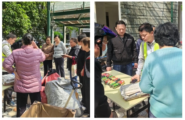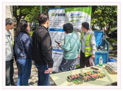 2025年05月06日 来源: 石泉路街道为积极推进垃圾分类与资源回收工作走深走实,坚持党建引领,共建绿色宜居社区,将垃圾分类工作与基层治理深度融合,4月28日上午,在街道城运中心的指导下,秋月枫舍党总支携手 “沪尚回收”服务企业,在社区内开展了一场别开生面的宣传回收便民服务日活动。丰富多样的互动形式与贴心的回收服务成功点燃了居民参与可回收物精细化回收的热情。