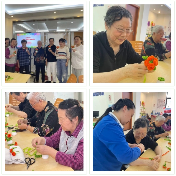 活动伊始,桌上整齐地摆放着颜色鲜艳的扭扭棒、精致的小花盆以及丰富的装饰材料。在张老师的耐心指导下,居民们不仅了解了柿子树的基本形态和“柿柿如意”的美好寓意,更在亲手制作中体验到创作的乐趣。一根根普通的扭扭棒,在灵巧双手中变成了色彩斑斓、栩栩如生的“柿子树”,大家脸上洋溢着满满的成就感与喜悦,为活动增添了浓浓的春意和祝福。
