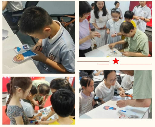接着,在授课老师的指导下,大家开始以“李启汉”“工人孙良惠”“女工阿金”为原型卡通皮影创作。家长们也在一旁耐心协助,亲子间的互动温馨而美好。不一会儿,一个个栩栩如生的皮影便诞生了,李启汉的坚毅、孙慧良的质朴、阿金的灵动,都在皮影上展现得惟妙惟肖。