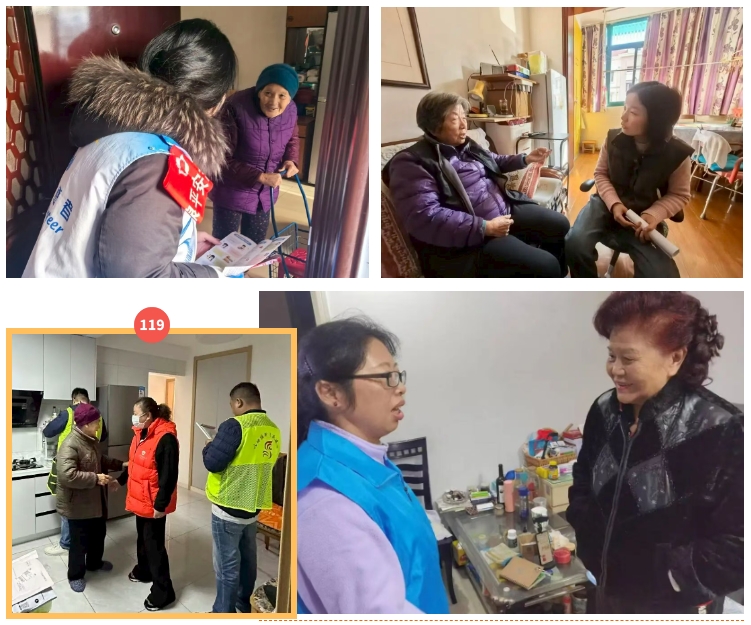 街道始终将独居老人、残疾人士、高龄老人等特殊群体的消防安全放在心上。各居民区组织社区平安志愿者和社区工作人员开展“敲门行动”,主动上门走访关心特殊群体家庭。