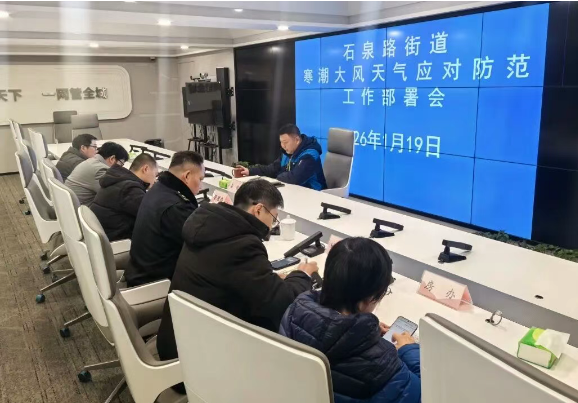 1月19日,石泉路街道召开寒潮大风天气应对防范工作部署会。街道办事处副主任吴俊作工作部署,要求各单位坚决克服麻痹思想,扎实做好应急物资储备、值班值守等工作。会议特别强调,要加强对流浪乞讨人员、施工工地、独居老人及困难群众等重点领域与人群的关注,同步开展用电防火安全宣传检查,全力消除各类安全隐患。