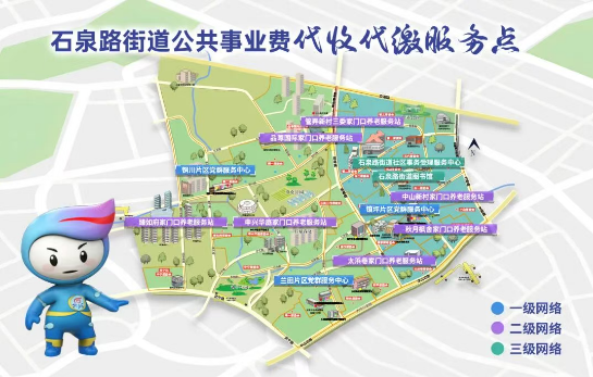 为让老年居民清晰知晓服务点位、内容与流程,街道精心编制《石泉路街道公共事业费代收代缴服务点》地图,清晰标注各站点地址、代办事项。各站点同步提供“线上指导+线下代收”双轨服务:一方面手把手教学手机缴费、线上支付,帮助老年人掌握智能技能,逐步跨越“数字鸿沟”;另一方面兼顾老年人使用习惯,保留现金代收、统一代缴服务,让每一位老年居民都能便捷缴费、安心办事。