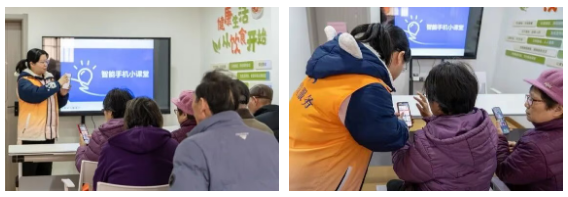 定期开设“智能手机小课堂”,由养老顾问通过电视大屏演示、手把手指导、一对一答疑等方式,向老年人讲解手机缴费、智能查询等实用技能,并融入反诈防骗知识,守护老年人财产安全。