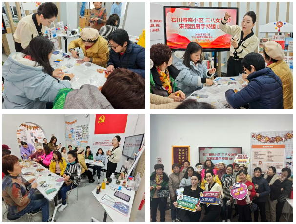 春意渐浓,美好如约。为庆祝“三八”国际妇女节,石川春晓党群服务站精心策划了一场别具匠心的“宋锦团扇手持镜DIY”主题活动,邀请社区女性居民共度一段融古韵与新知于一体的时光。活动现场,在专业老师的带领下,大家亲手制作起独具韵味的宋锦团扇手持镜。一针一线、一贴一合间,不仅感受了非遗文化的细腻与温度,也体会到了传统手工艺的独特魅力。除了手作的乐趣,活动还特别设置了实用的“护肤小课堂”。老师现场传授护肤品成分辨别之道,并邀请参与者携带自用护肤品进行现场测试实验,让女性朋友们在妆点外在美的同时,更收获了源于智慧与用心的内在力量。