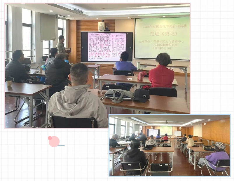 “史家之绝唱,无韵之《离骚》”——《史记》堪称史学与文学双绝。石泉图书馆特邀曹瑞庆老师开讲国学历史,带领读者穿越三千年沧桑,探寻司马迁著书初心,品读这部纪传体通史的恢弘格局。现场交流热烈,书香浸润人心,以经典传承文脉,共筑书香社区。