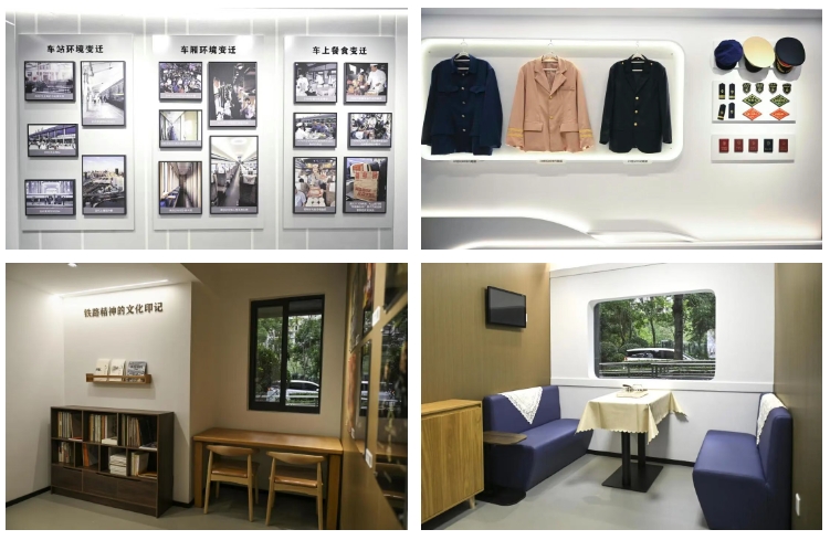 步入空间,浓郁的铁路气息扑面而来:老照片墙、铁路模型、站台座椅等陈设,还原了铁路发展的历史场景。墙上的图文展板串联起铁路发展的重要节点,从蒸汽机车的轰鸣到高铁时代的飞驰,从铁路职工的奋斗日常到邻里相伴的温情瞬间,生动再现了铁路与社区共生共荣的历程。
