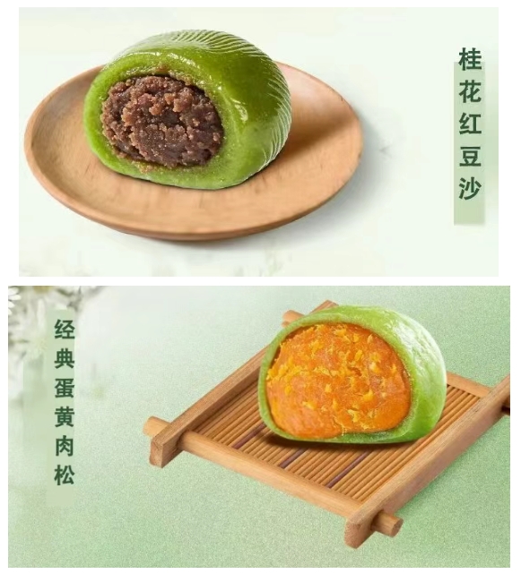 其招牌产品桂花红豆沙口味青团,选用与一品名仕包子同款的桂花豆沙馅,品质有保障,甜而不腻;经典蛋黄肉松口味青团,选用高邮咸蛋黄和金锣肉松,口感沙酥,咸蛋黄还流油;马兰头鲜肉青团,则选用当季新鲜的马兰头和金锣新鲜猪腿肉,清香爽口。