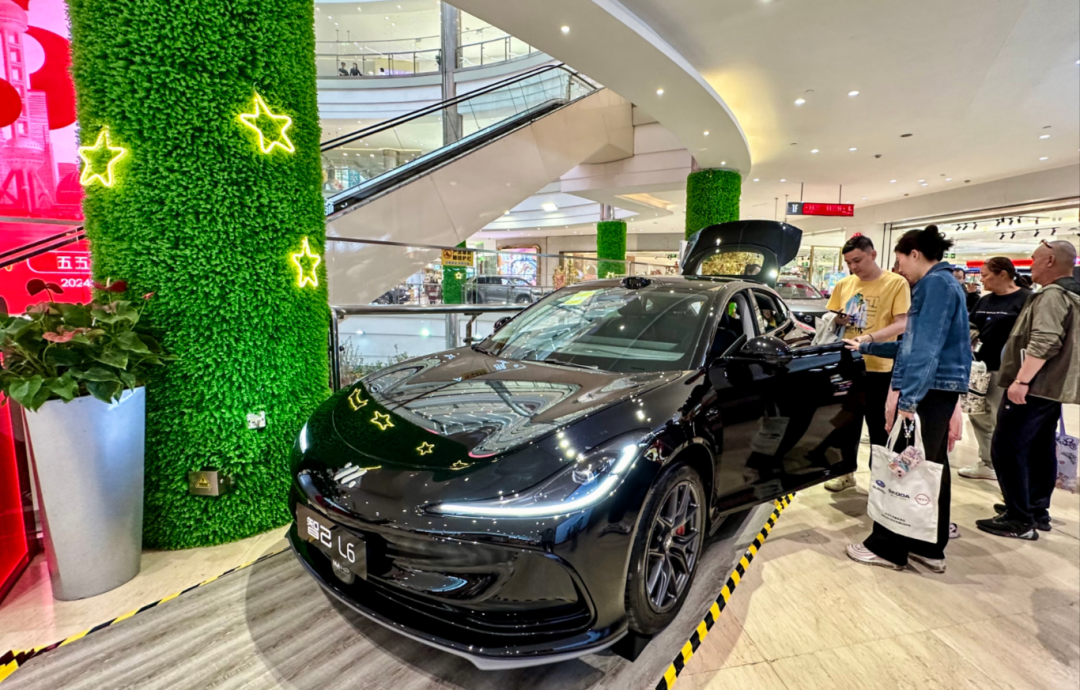 特别是针对想要购车的消费者,百联中环购物广场聚焦新能源车未来出行体验、智能穿戴科技互动、AI机器人创意互动三大前沿板块,打造沉浸式科技消费场景。同时,小米、华为等品牌的智能穿戴设备也亮相现场,消费者可以亲自试用。