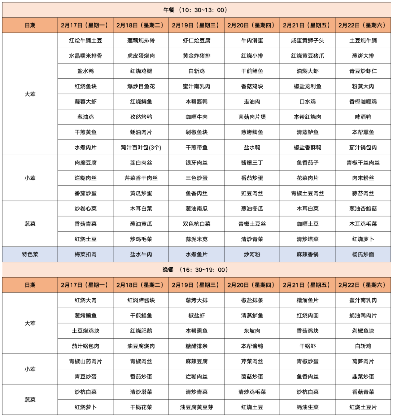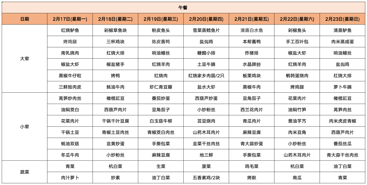 【TOP菜谱】桃浦社区食堂一周菜谱抢先看(2.17-2.23)