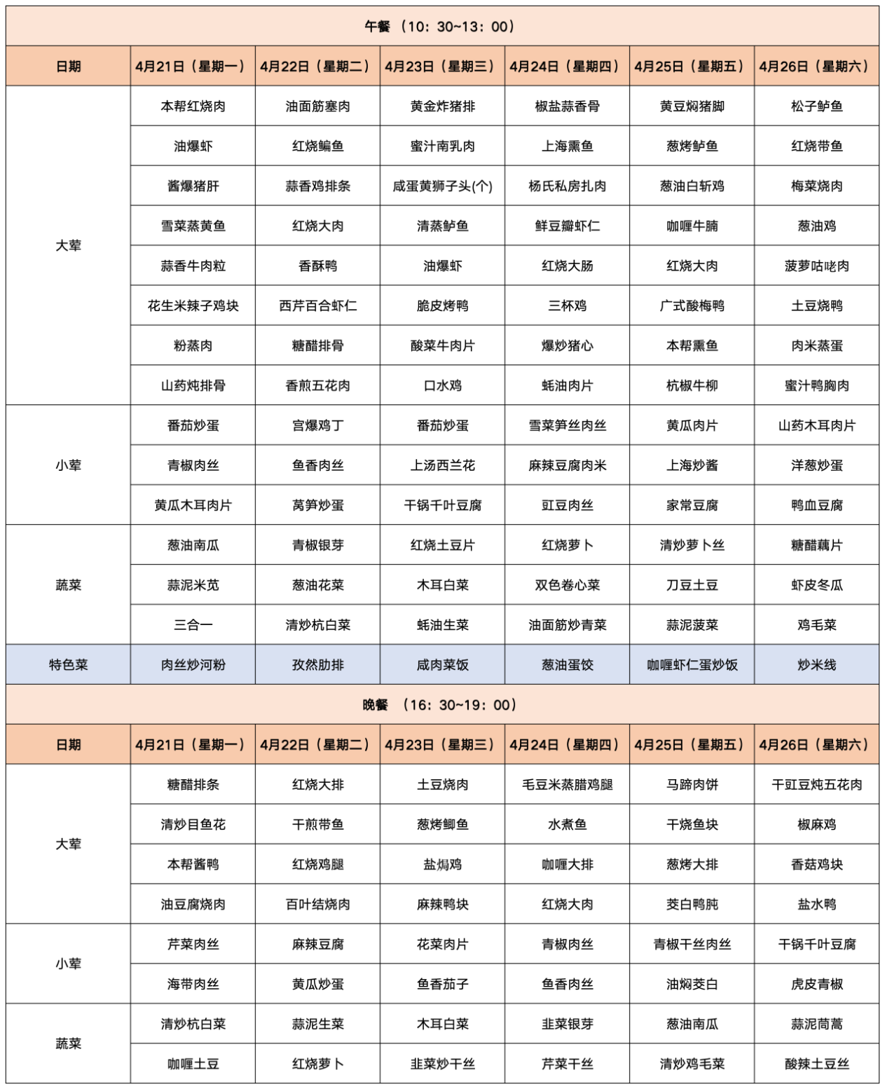【TOP菜谱】桃浦社区食堂一周菜谱抢先看(4.21-4.27)