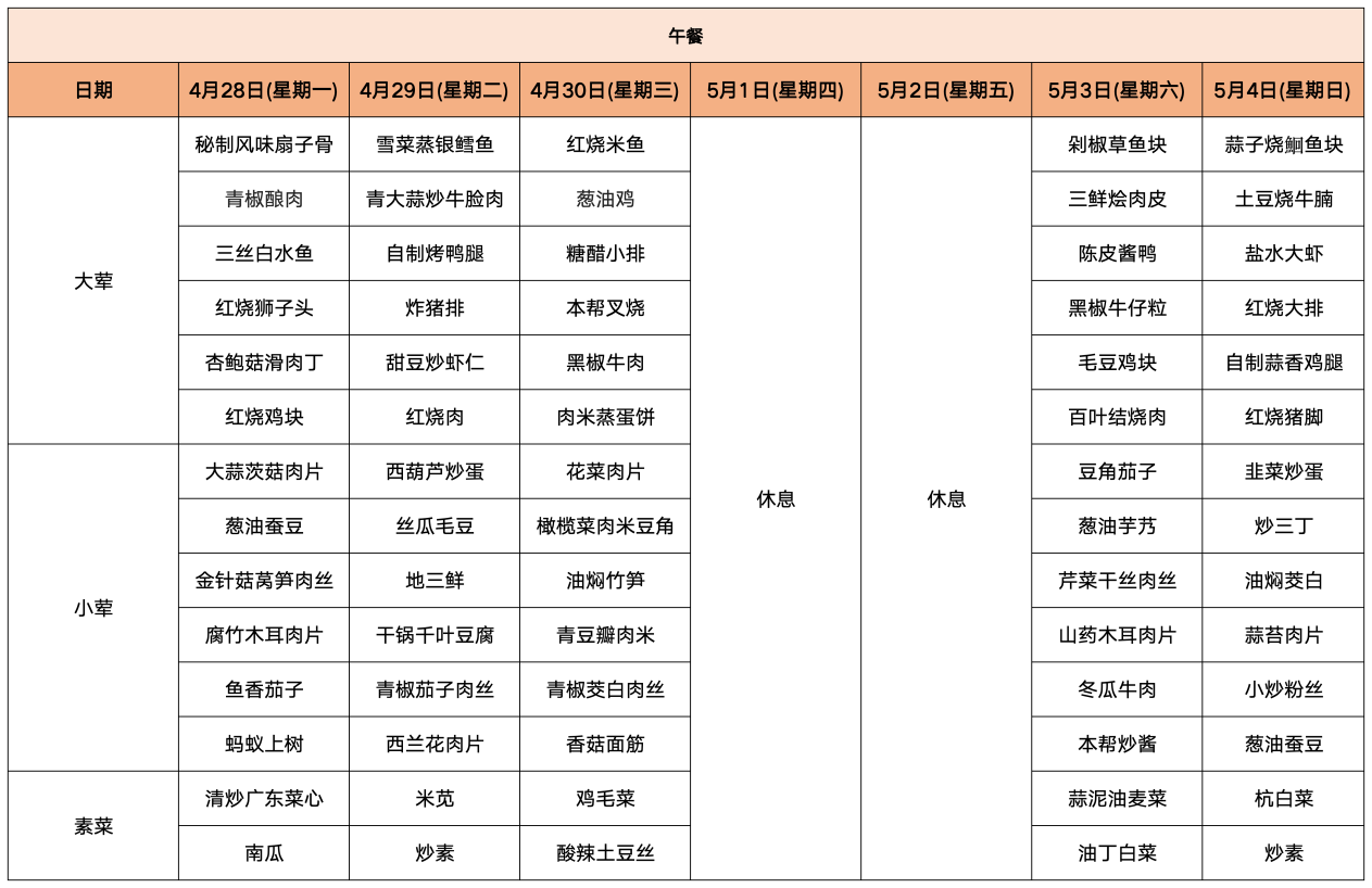 【TOP菜谱】桃浦社区食堂一周菜谱抢先看(4.28-5.4)